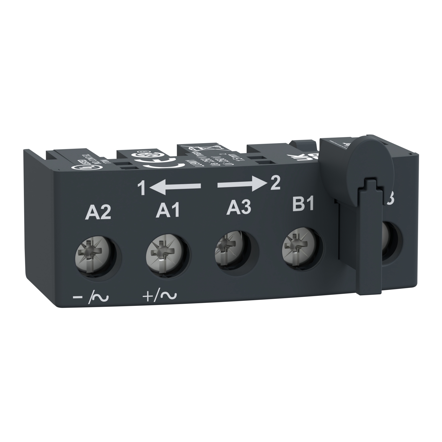 TeSys U upravljački terminalni blok koji se ubacuje u blok reversera LU2M* ili LU6M* za lokalnu žičanu kontrolu kontrolera za pokretanje unazad. Koristi se za FV/RV/OFF kontrolu aplikacija motora za rikverc sa žičnom kontrolom. Obezbeđuje vijčane stezaljke za ožičenje kontrolnog kola FV/RV/OFF (2 smera rotacije). Blok uključen sa bazom za napajanje unazad LU2B12, LU2B32, LU2B38. Green Premium usklađen (RoHS/REACh).