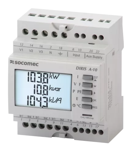DIRIS A-10 je modularni multifunkcionalni merač za merenje električnih vrednosti u niskonaponskim mrežama sa povezivanjem na strujne transformatore.