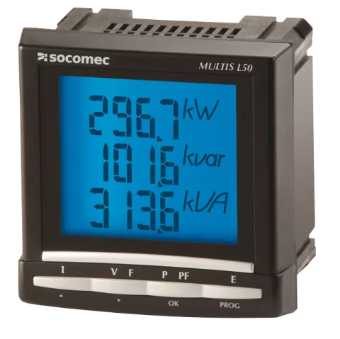 MULTIS L je digitalni merač montiran na panelu koji prikazuje vrednosti više merenja i energije direktno na velikom LCD ekranu sa pozadinskim osvetljenjem. Dizajniran je za upotrebu u trofaznim ili jednofaznim mrežama sa povezivanjem preko strujnih transformatora (CT) i pogodan je za primene do 6000 A. Proizvod se može konfigurisati od strane korisnika putem tastature i ekrana.