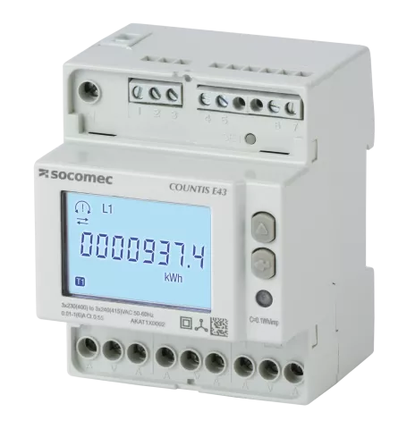 COUNTIS E4x je modularni merač električne energije koji na svom osvetljenom LCD ekranu prikazuje potrošnju energije (kWh, kVArh i kVA) i druge merenja.