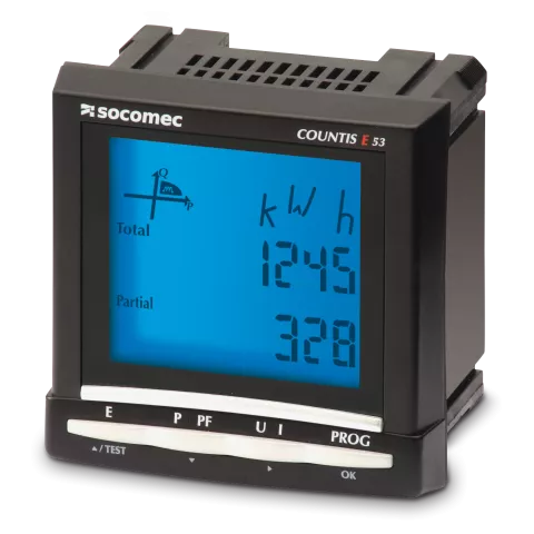 COUNTIS E5x je ugrađeni merač aktivne i reaktivne električne energije za trofazne mreže.Omogućava povezivanje do 6000 A putem strujnih transformatora (TC).Korisnik može konfigurisati odnos TC-a pomoću tastature i displeja.
