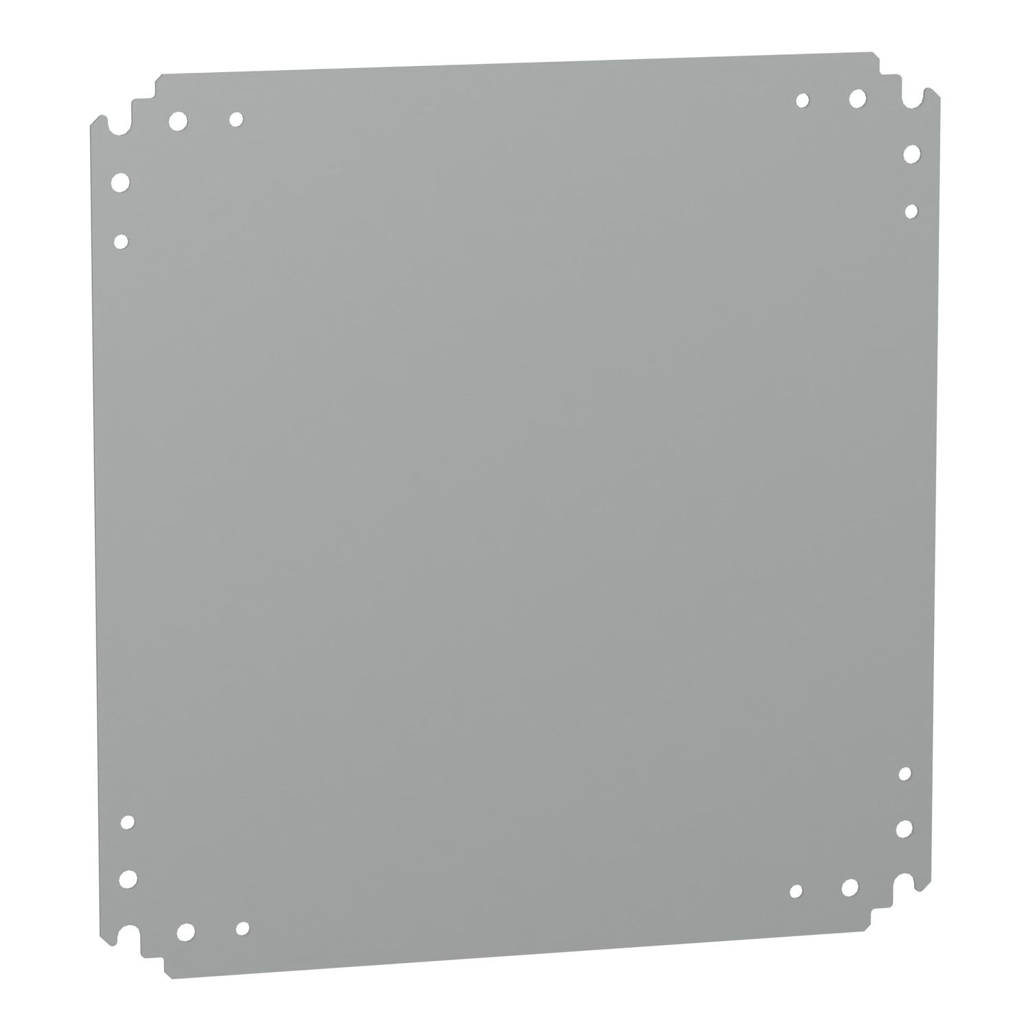 Thalassa PLA/PHD metalna montažna ploča. Za kućište V je 500 x Š je 500 mm. Mesto ugradnje stepenastih klizača ili na zadnjem mestu umetaka (fiksiranje pomoću zavrtnja tipa M8). Obična montažna ploča. 150 kg trajno dozvoljeno opterećenje. Galvanized Steel. Siva RAL 7035.