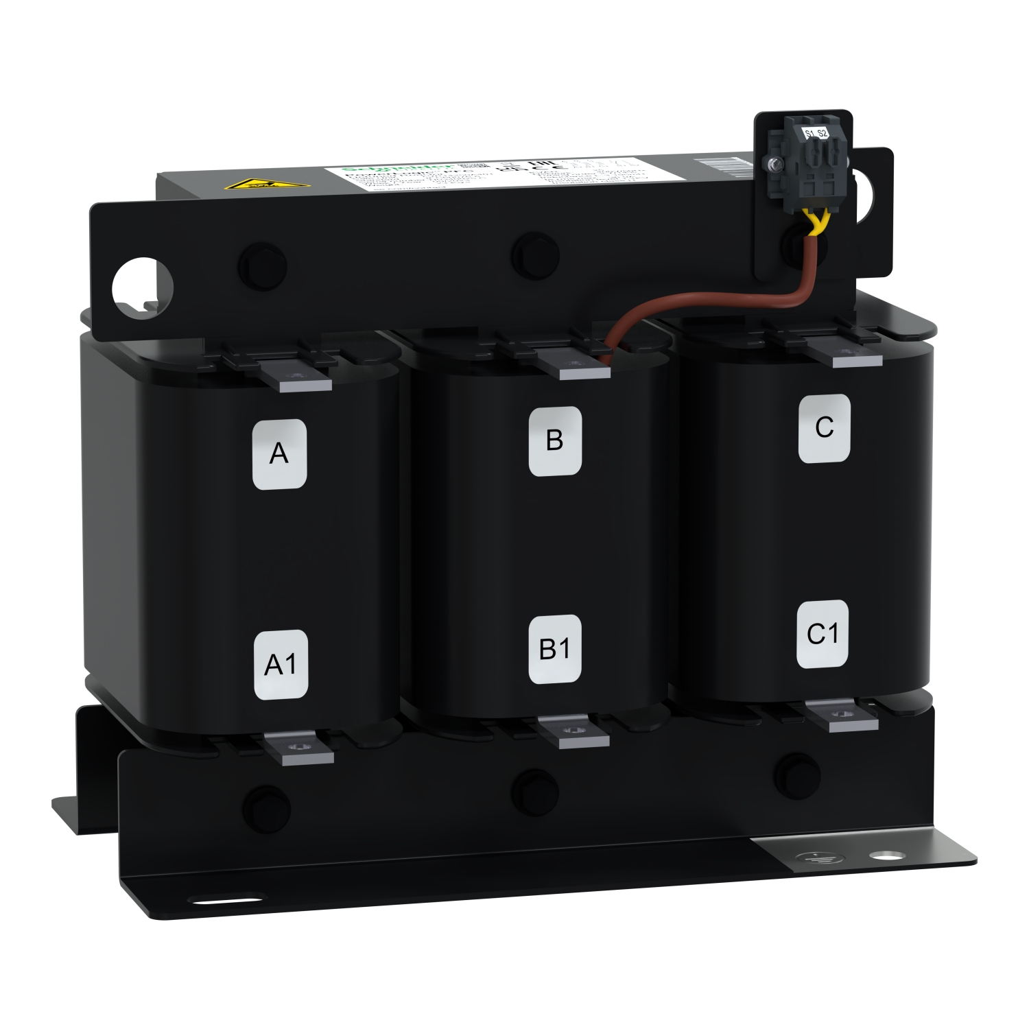 VarPlus prigušnica za harmonike je dizajniran da zaštiti kondenzator sprečavanjem pojačanja harmonika prisutnih u sistemu. Kondenzatori i reaktori su konfigurisani u serijskom rezonantnom kolu. Podešen tako da je serijska rezonantna frekvencija ispod najniže harmonijske frekvencije prisutne u sistemu. Ovaj reaktor je ocenjen za izlaznu snagu od 25 kVar sa redosledom podešavanja od 2,7/135 Hz na 400 V AC na 50 Hz. Relativna impedansa, 14 %. Ova komponenta ispunjava standarde IEC 60068. Ova komponenta zahteva prinudnu konvekciju, potrebno je dodati ventilator. Dimenzije kućišta su 220 mm u visinu, 240 mm u širinu i 160 mm u dubinu. Za težinu proizvoda od 22 kg.