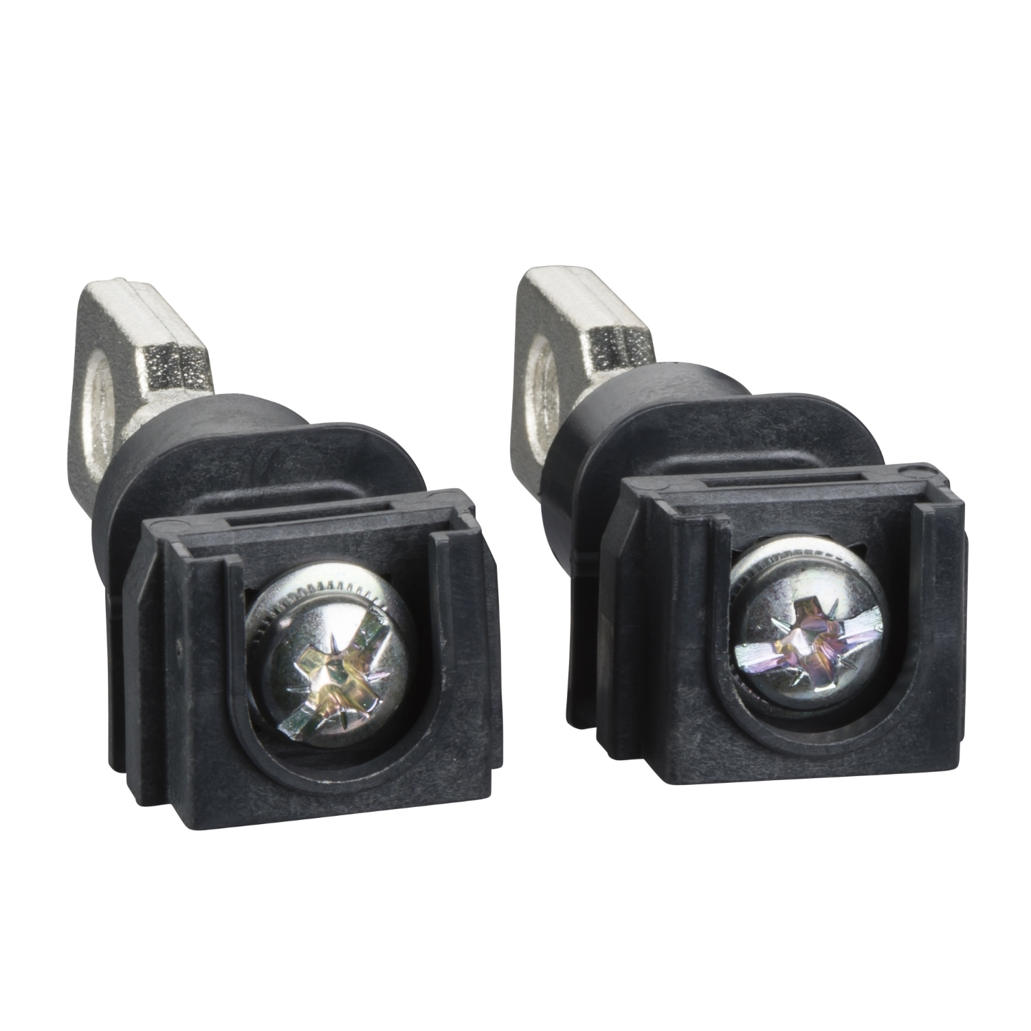Zadnji priključci - kratki za Compact NSX 100/160/250 i EasyPact CVS 100/160/250. Zadnji priključak se jednostavno postavlja na priključne terminale uređaja. Montaža uređaja na zadnju ploču sa odgovarajućim rupama omogućava povezivanje pozadi. Dužina je oko 43 mm. Nazivna struja je do 250 A. Prodaju se u kompletu od 2 dela.