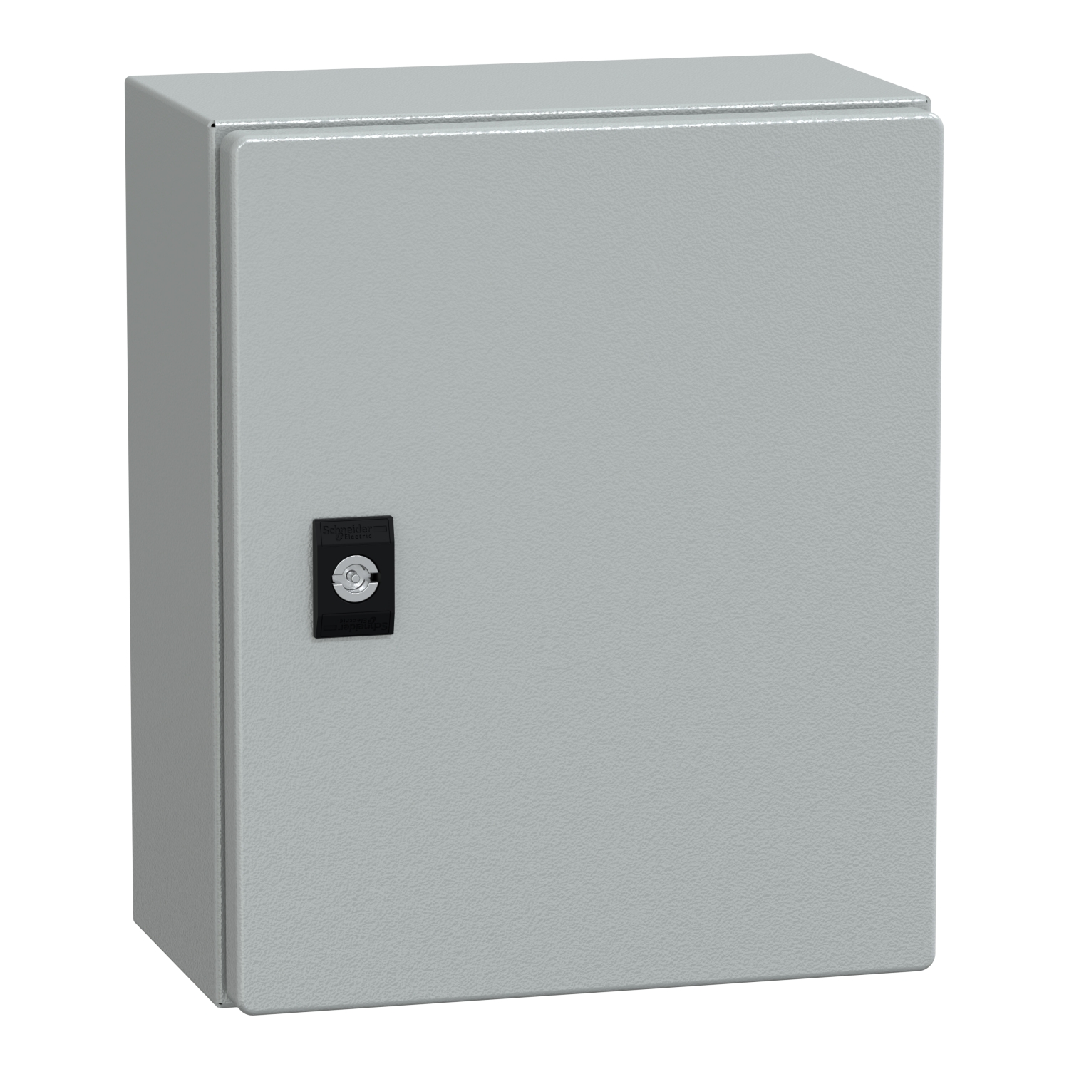 Spacial CRN kompaktno kućište za zidnu montažu dolazi u sivoj boji i dizajnirano je za višenamensku primenu. Ovo kompaktno kućište se sastoji od kućišta, ploče sa uvodnicama za kablove, vrata, brave. Kompaktno kućište je napravljeno od čelika (telo), što ga čini izdržljivim i otpornim. Ima IP66 i IK10 nivo zaštite, što može pomoći u zaštiti od udara, vode i prašine. Dimenzije su (Š) 250 mm x (V) 300 mm x (D) 150 mm. Ima poleđinu zavarenu sa dvostrukim profilom koji formira zaštićenu zaptivnu površinu, a bočne strane su napravljene od jednog presavijenog dela. Vrata su obična, imaju 1 vrata, a strana otvaranja vrata je reverzibilna. Opremljen sa bravom sa dvostrukom bravom od 3 mm. Sadrži epoksidno-poliestersku završnu obradu u prahu, koja obezbeđuje svetlu, ujednačenu i privlačnu završnu obradu. Ovaj uređaj je kvalifikovan kao zeleni premijum proizvod, sa minimalnom upotrebom opasnih materija. Ovo kompaktno kućište ima c.UL sertifikat.