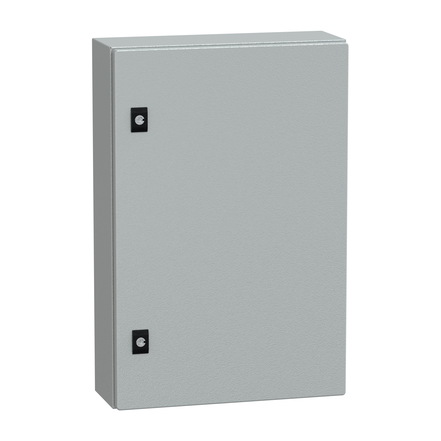 Spacial CRN kompaktno kućište za zidnu montažu dolazi u sivoj boji i dizajnirano je za višenamensku primenu. Ovo kompaktno kućište se sastoji od kućišta, ploče sa uvodnicama za kablove, vrata, brave. Kompaktno kućište je napravljeno od čelika (telo), što ga čini izdržljivim i otpornim. Ima IP66 i IK10 nivo zaštite, što može pomoći u zaštiti od udara, vode i prašine. Dimenzije su (Š) 400 mm x (V) 600 mm x (D) 150 mm. Ima poleđinu zavarenu sa dvostrukim rofilom koji formira zaštićenu zaptivnu površinu, a bočne strane su napravljene od jednog presavijenog dela. Vrata su obična, imaju 1 vrata, a strana otvaranja vrata je reverzibilna. Opremljen sa bravom sa dvostrukom bravom od 3 mm. Sadrži epoksidno-poliestersku završnu obradu u prahu, koja obezbeđuje svetlu, ujednačenu i privlačnu završnu obradu. Ovaj uređaj je kvalifikovan kao zeleni premijum proizvod, sa minimalnom upotrebom opasnih materija. Ovo kompaktno kućište ima c.UL sertifikat.