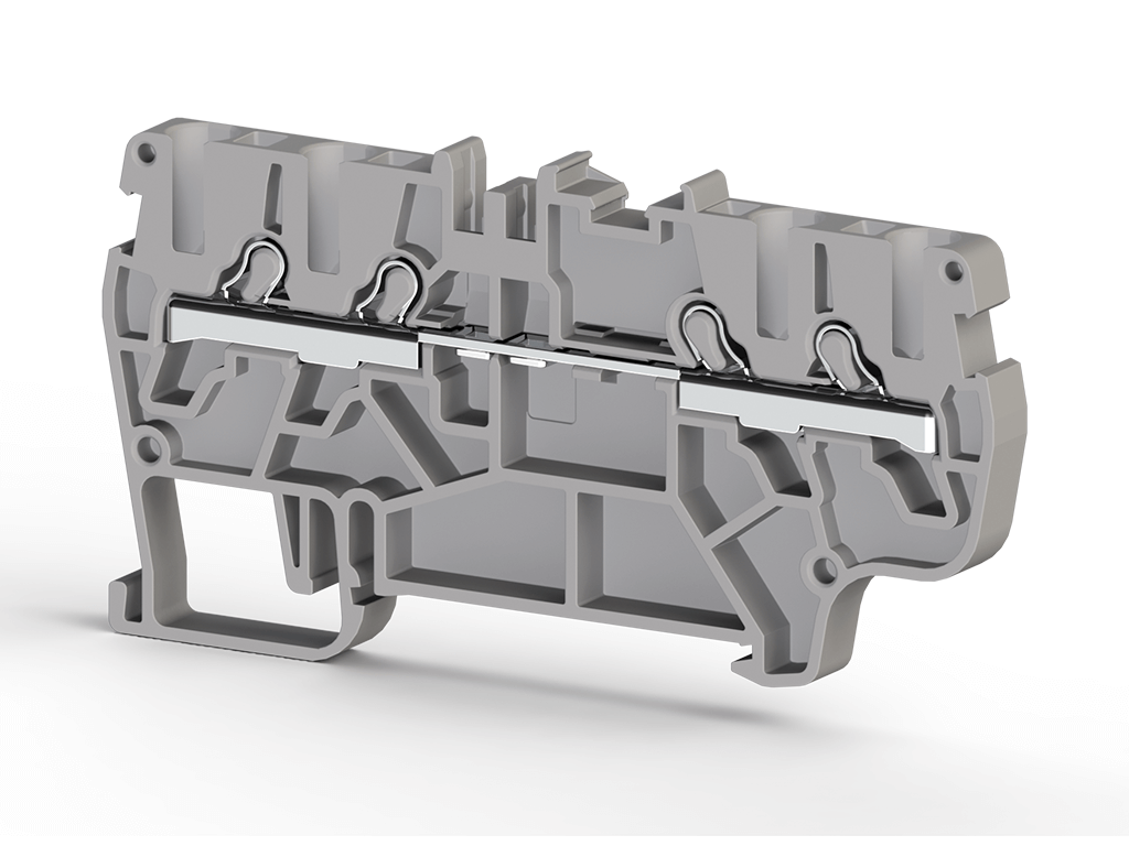 2,5 mm², push-in tip, prolazna stezaljka sa 2 ulaza i 2 izlaza, izolacioni materijal PA, siva boja.