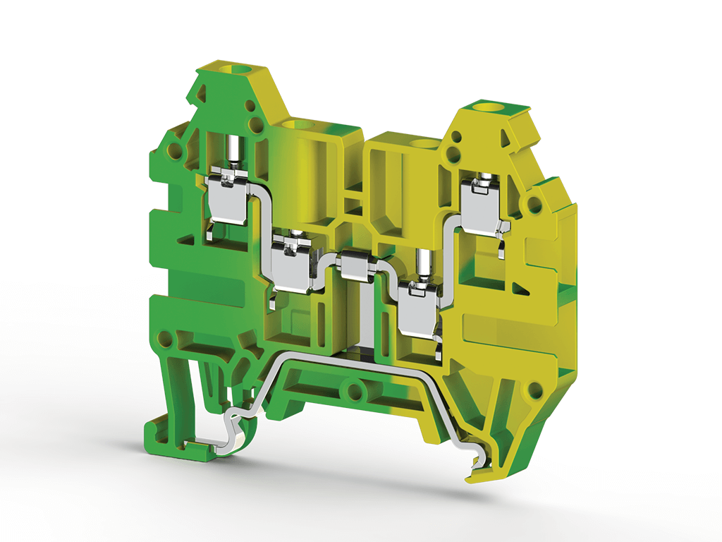 2,5 mm², jednodelna redna stezaljka sa 1 ulazom i 3 izlaza, izolacioni materijal PA, žuto-zelena boja.
