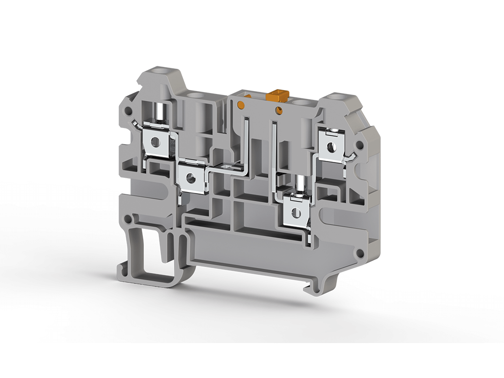 4 mm², zavrtanj za povezivanje, jednodelna redna stezaljka sa 2 ulaza i 2 izlaza, izolacioni materijal PA, siva boja.