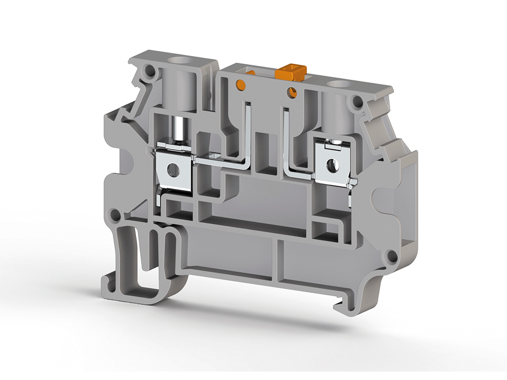 4 mm², zavrtanj za povezivanje, stezaljka za isključenje sa nožem, izolacioni materijal PA, siva boja.