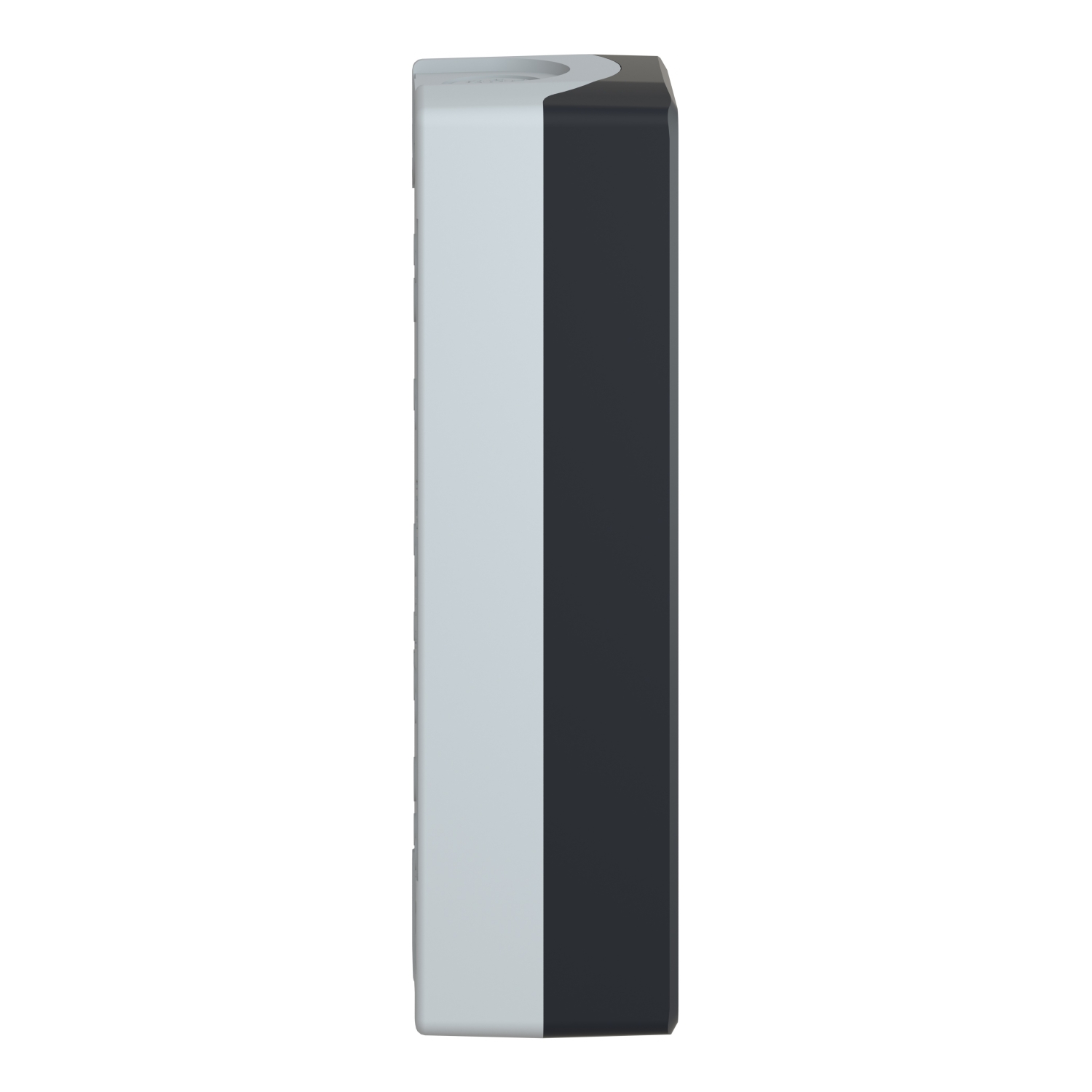 Prazna kutija sa tamnosivim poklopcem sa svetlosivom osnovom Harmony XALD prazna kontrolna stanica ima 5 isečaka za 5 tastera / 5 funkcija za kontrolu rada u mašinama. Ova tamno siva prazna kutija sa 5 isečaka omogućava proizvođačima mašina da prilagode svoje mašine tako što lako dodaju bilo koju kontrolnu i signalnu funkcionalnu jedinicu na kućište u skladu sa potrebnom operacijom. Dizajnirana je za jednostavne i masovne proizvodne mašine, tekstil, pakovanje, rukovanje malim sistemima za podizanje, upravljanje garažnim vratima, rolo vrata, otvore za usisavanje dima. Kompatibilna je sa Harmony XB5 dugmadima, prekidačima i kontrolnom lampom. Otporna je na udarce, prašinu, vodu, koroziju i vibracije zahvaljujući IP69 / IP67 / IP66 / IP69K, što ga čini idealnim za rad u teškim okruženjima. Može se naknadno opremiti sa svim dugmadima serije XB5, pilot svetlima, selektorskim prekidačima i džojsticima. Njegov širok opseg radnih temperatura od -40°C do 70°C omogućava raznovrsnost u upotrebi proizvoda.