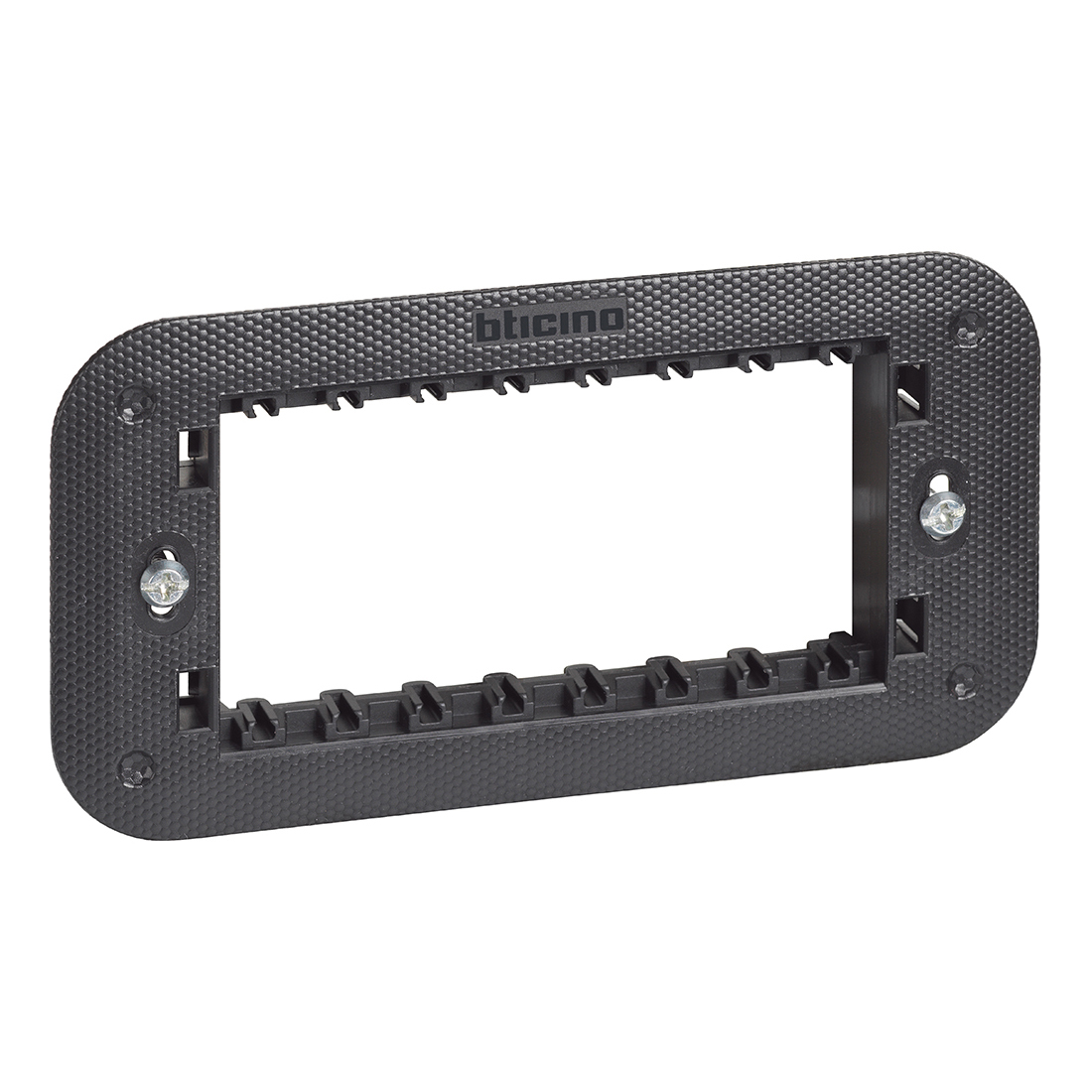 BTicino LN4704 nosač – za 4 modula iz serije Living Light. Termoplastični materijal, montaža pomoću vijaka, kompatibilan sa horizontalnom i vertikalnom instalacijom.