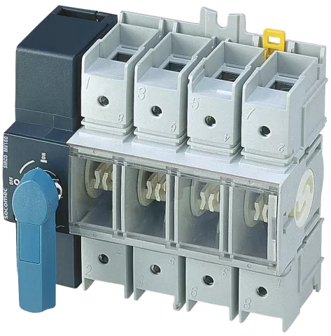 Socomec SIRCO MV prekidač opterećenja, 4-polni, 160 A, 690 VAC / 400 VDC, prednja ili bočna komanda, bez ručke, modularna izvedba, za sigurnosnu izolaciju i upravljanje niskonaponskim krugovima.
