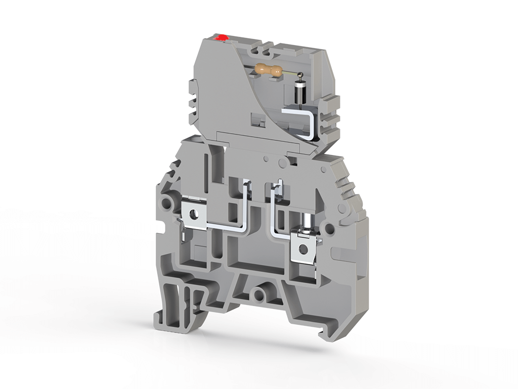 4 mm², zavrtanj za povezivanje, 24V DC sa LED indikacijom, stezaljka za osigurač sa utičnicom za isključenje (5x20-25), izolacioni materijal PA, siva boja.