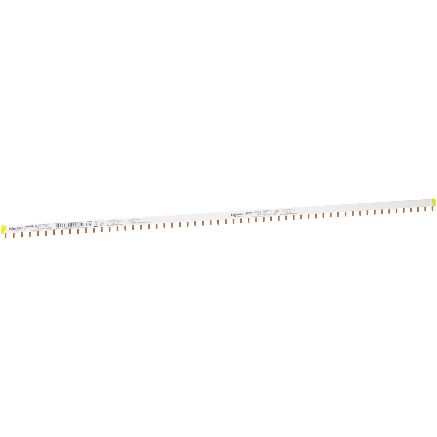 Ovaj Acti9 proizvod je horizontalna češljasta sabirnica koja se može seći od 57 modula za Acti9 C60. Napravljena je za 1L ugradnju. Tip je L1 (faza). Set od 1 uređaja. Pogodno za 57 uređaja (1P). Dužina je 1000mm. Ukupan broj modula od 18mm je 57. Poprečni presek priključka je 16mm2. Vrsta električnog priključka su zupci. Broj faza je 1. Broj polova je 2. Ie nazivna radna struja je 100A na 40°C. Isc struja kratkog spoja je kompatibilna sa prekidnom moći prekidača Schneider Electric. Ui nazivni napon izolacije 500VAC. Ue nazivni radni napon je 415VAC. Boja uređaja je antracit siva RAL 7016. Stepen zaprljanosti je 3. U skladu sa IEC 60695-2-1 standardom za otpornost na vatru, samogasivi na 960°C tokom 30s. U skladu sa IEC 60947-7-1 i IEC 61439-2 standardima.