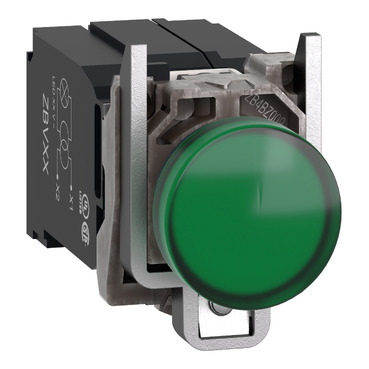 Zelena kompletna signalna lampica Ø22 ravna sočiva sa integrisanim LED 400V Harmony KSB4 sa običnim sočivom se napaja sa 400V AC, koristi univerzalni LED sa transformatorom. Ima metalni okvir. Ovo kontrolno svetlo, dizajnirano da traje bez održavanja za svetli indikator procesa i operacija mašina, lako se ugrađuje u standardne izreze prečnika 22 mm i povezuje jednostavnim spojevima zavrtnjima. Vizuelno se jasno razlikuje na daljinu zahvaljujući svetlom i dugotrajnom LED osvetljenju i transformatoru. Otporan je na udarce, prašinu, vodootporan i otporan na vibracije zahvaljujući IP66/IP67/IP69/IP69K, što ga čini idealnim za rad u teškim okruženjima.