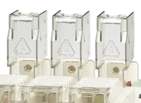Terminalna zaštita za FUSERBLOC prekidače, 2-polna, za struje od 250 do 400A. Montira se na gornjoj ili donjoj strani i obezbeđuje IP20 zaštitu od direktnog kontakta.